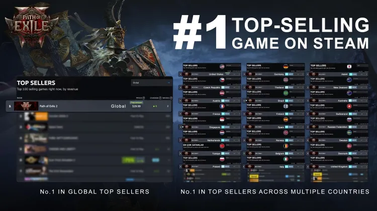 《流放之路:降临》国际服自2024年上线以来,最高同时在线万大关,登顶全球热销周榜首位,实力霸榜长达8次,还在Steam 2024年度评选中荣获了“铂金级年度新品”、“铂金级最热玩游戏”以及“最畅销黄金游戏”等多项殊荣。在Twitch平台上,观众峰值一度达到123万,远超同类产品此前创下的94万记录。